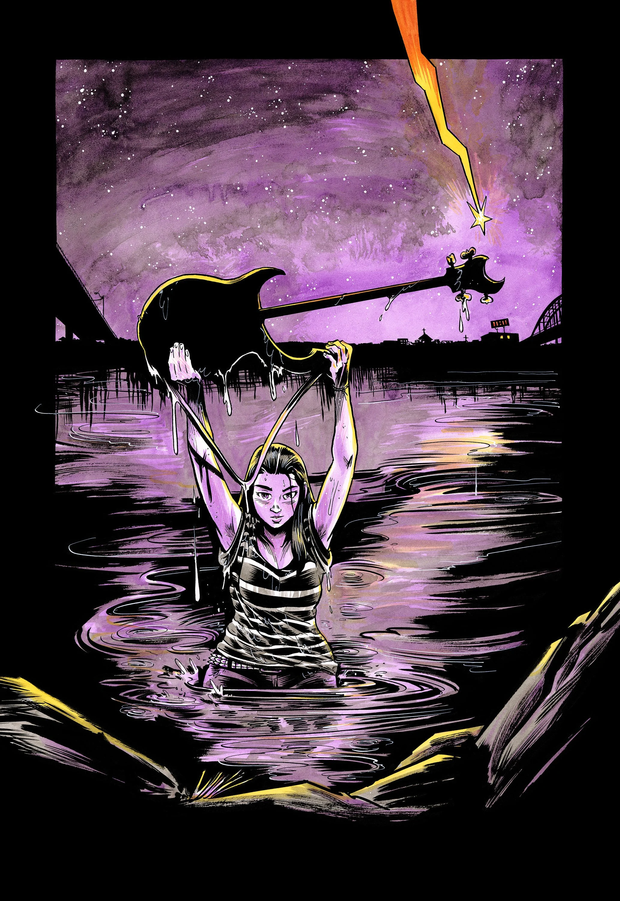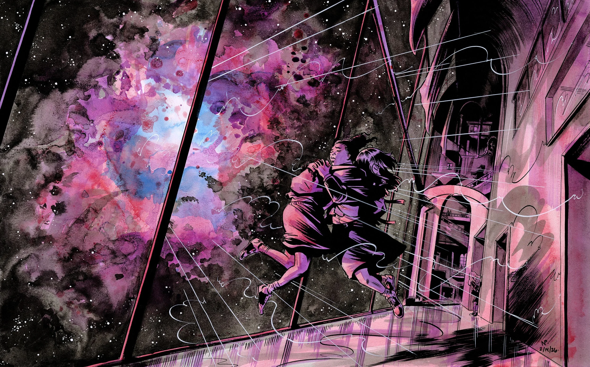 And a print of a recent commissioned piece inspired by Tillie Walden’s graphic novel On a Sunbeam: